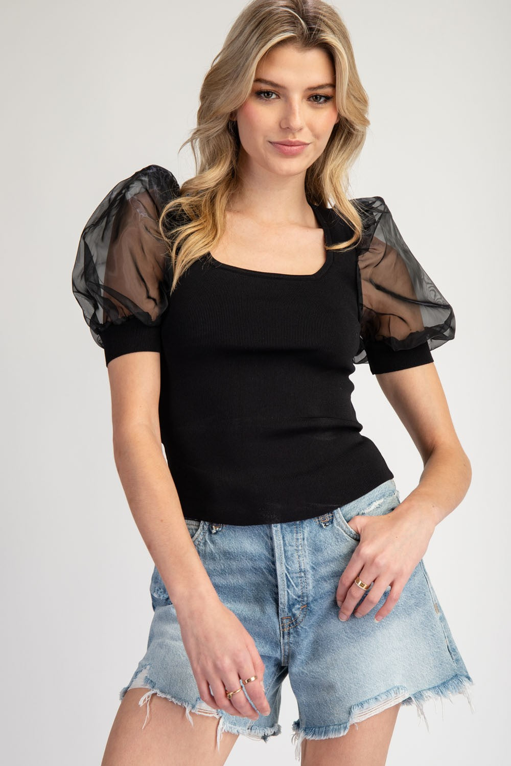 The Ellen Mesh Puff Sleeve Blouse Top combines elegance with a touch of drama, featuring delicate mesh puff sleeves that add a sophisticated flair to any ensemble. This blouse offers a perfect balance between feminine charm and contemporary style, making it ideal for both casual and formal occasions.