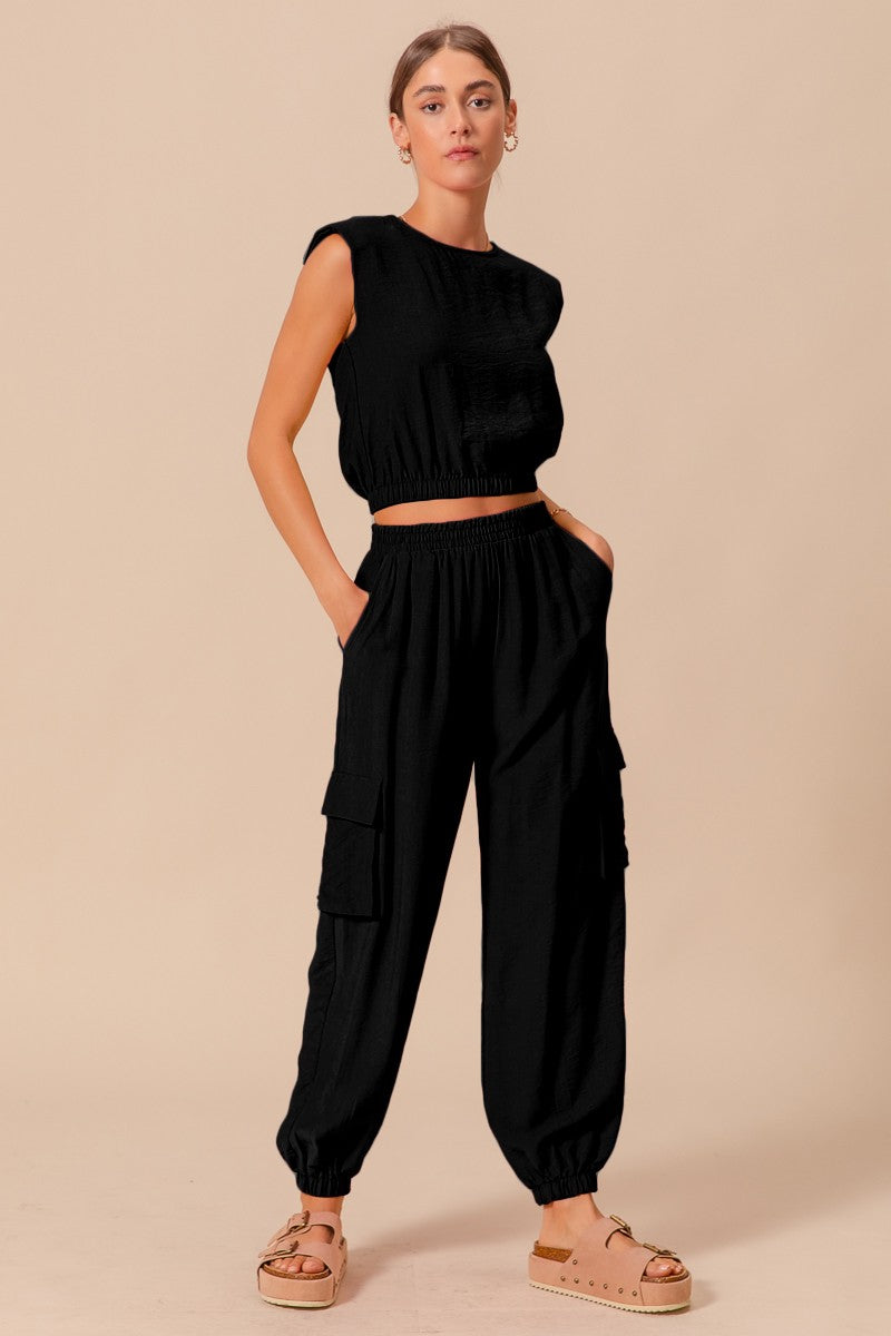 The Sarah Cargo Set blends contemporary flair with functional design. Ideal for urban adventures or relaxed outings, this set offers a trendy yet comfortable ensemble that exudes versatility and modern edge.